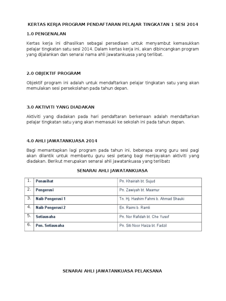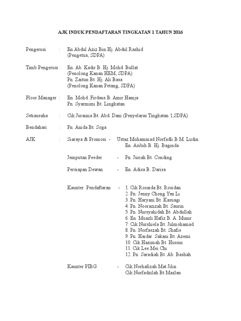 Contoh ajk pendaftaran pelajar tingkatan 1. 1 0300 0320 ptg Dewan Kantin Rehat 0320 0420 ptg Kelas Ting 1 Ujian Bahasa Inggeris - Penyelaras Ting. Bagi urusan pembayaran Bayaran Pendaftaran Pelajar Baharu RM600 Pelajar Senior RM150 sila rujuk bahagian D di bawah. Soal selidik kajian kepuasan pelanggan psukns tahun 2021 klik di sini.