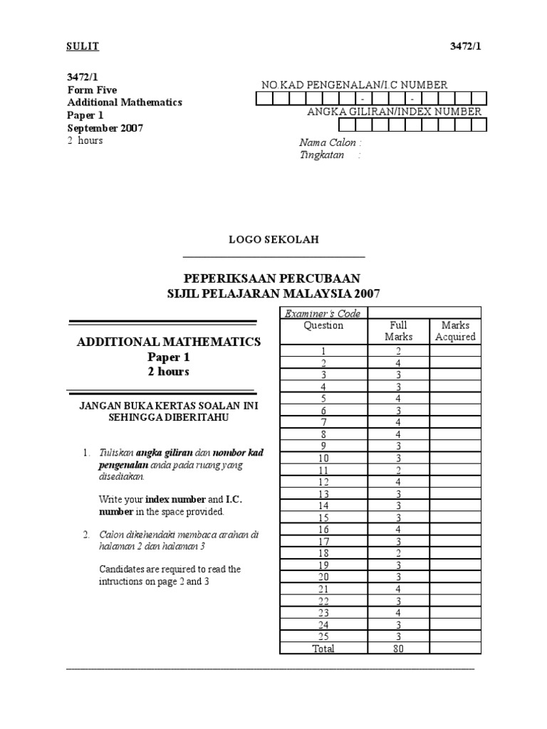 Jika ini diteruskan dalam ujian nescaya hanya 12 soalan saja yang mampu di jawab bagi kertas 1. Use the download button below or simple online reader. Modul Bimbingan Matematik Tambahan Tingkatan 4 FUNGSI KERTAS 1 P 1 2 3 Q 2 4.